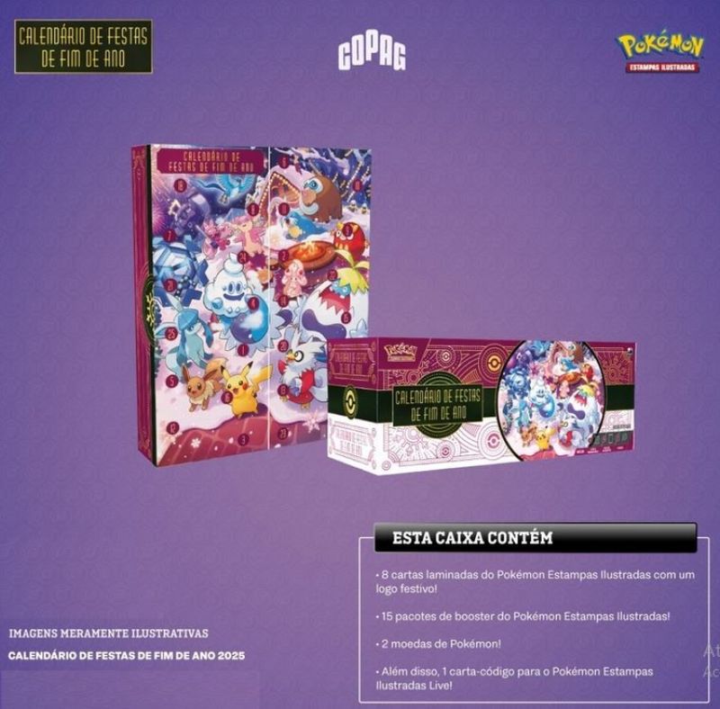 O CALENDÁRIO DE FESTAS DE FIM DE ANO DO POKÉMON ESTAMPAS ILUSTRADAS INCLUI 25 SURPRESAS PARA VOCÊ DESCOBRIR: