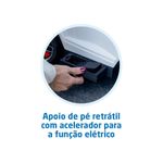 Botão frente e ré, cercado de proteção removível, step decorativo, apoio dos pés, haste direcionável com suporte para sacola e rodas emborrachadas para fácil manobra e transporte.Controle Remoto: