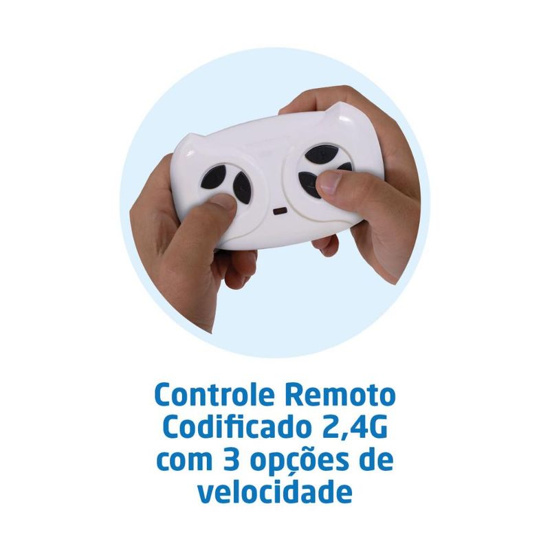 Controlado pelo adulto via controle remoto.