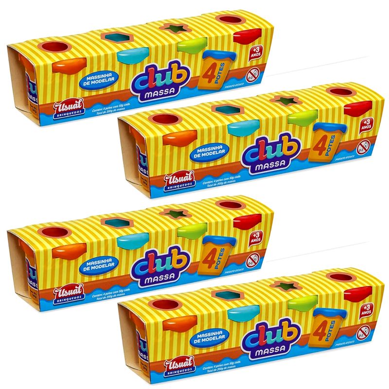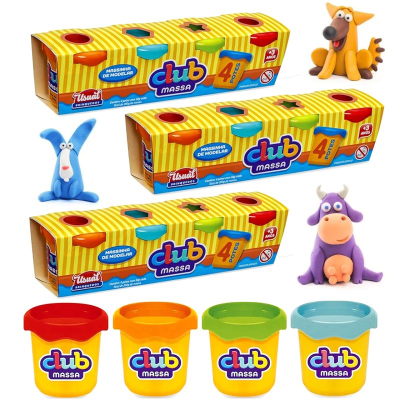 Kit com 12 Potes de Massinha de Modelar Infantil Atóxico Club Massa Usual Atacado Revenda Lembrancinha de Festa Infantil para Sacolinha Surpresa