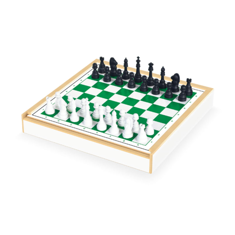• 1 estojo com 6 jogos: xadrez, ludo, damas, trilha, pega-varetas e dominó