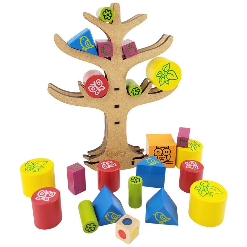 Este jogo do equilíbrio tem como principal objetivo, equilibrar o maior número de peças na árvore, o participante que colocar a peça e desequilibrar, perde o jogo. Feito em madeira, este brinquedo educativo trabalha raciocínio lógico, concentração, coordenação motora e descriminação visual.