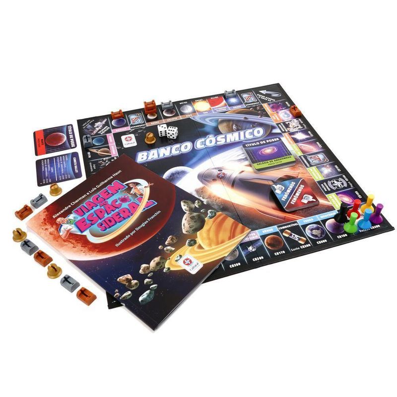 Jogo Banco Imobiliário Cósmico com Livro Viagem Ao Espaço Sideral da Estrela É Ideal Para Crianças Acima de 8 Anos.