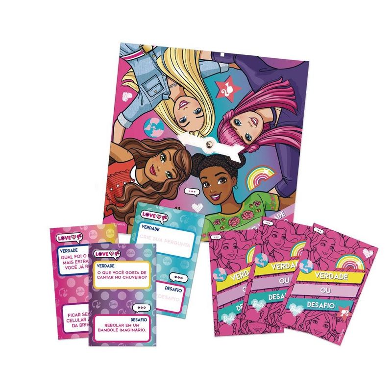 Jogo Barbie Verdade ou Desafio - Xalingo As meninas vão adorar se divertir com o Jogo Barbie Verdade ou Desafio da Xalingo! O jogo Verdade ou Desafio é um jogo de perguntas, respostas e desafios composto por 36 cartas e uma roleta com figuras e cores que remetem ao universo da Barbie. Com a proposta de se jogar em grupo, o Barbie Verdade ou Desafio auxilia a criança a desenvolver a comunicação, a convivência social e a curiosidade, que é a fonte da criatividade. Idade recomendada: a partir dos 6 anos de idade.