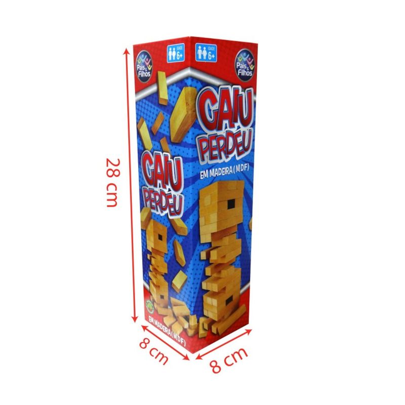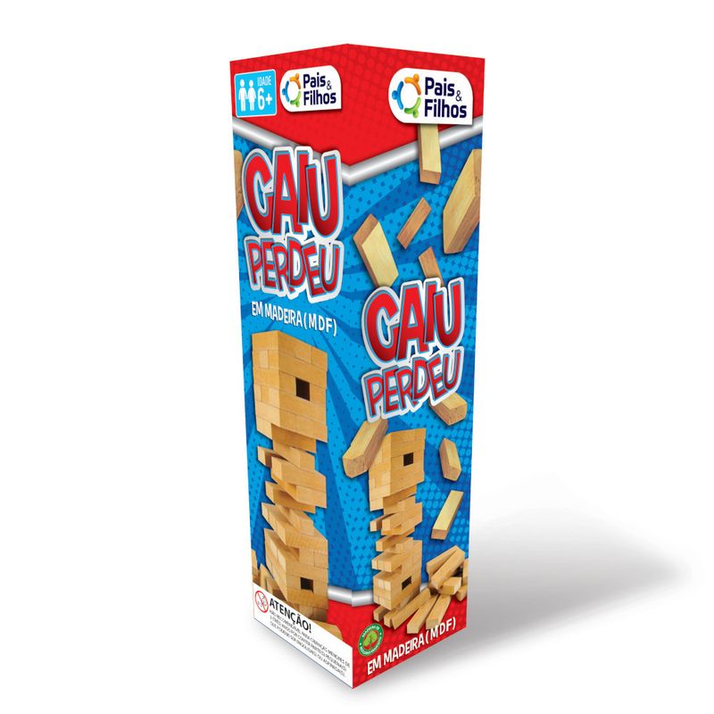 Caiu Perdeu Pais & Filhos é um jogo de blocos que precisa de equilíbrio, concentração e muita agilidade! Monte sua torre, retire as peças e empilhe-as no topo com muito cuidado para ela não cair. Ganha quem conseguir manter a torre em pé por mais tempo.