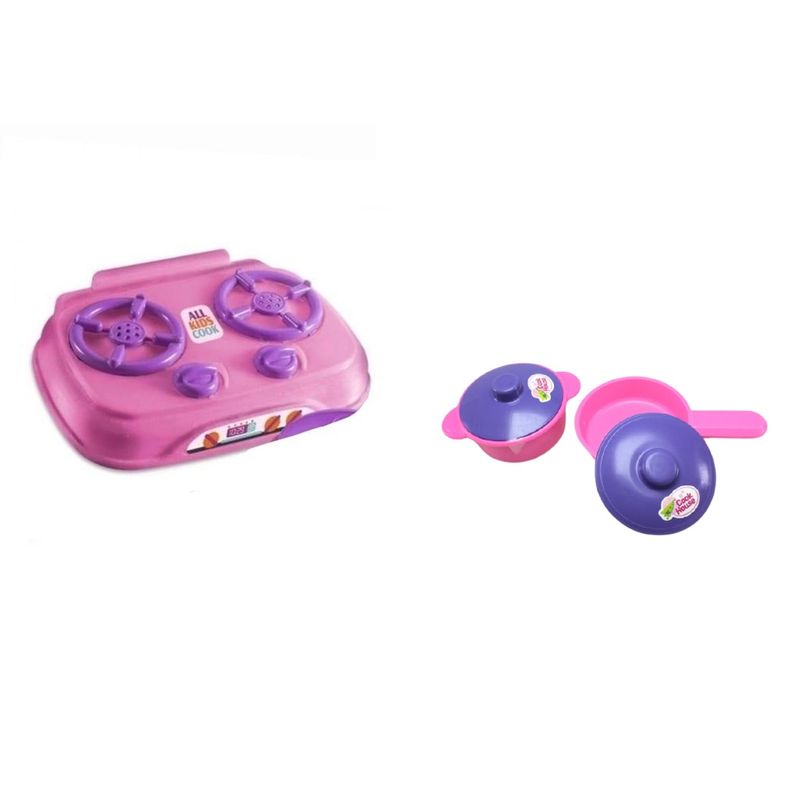 BRINQUEDOSBRINCADEIRA DE CASINHAUTENSÍLIOS DE COZINHA DE BRINQUEDOJogo Cozinha Infantil Fogão + Frigideira E Panela Com Tampa