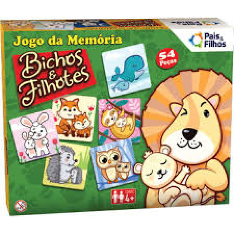 Jogo da Memória Bichos e Filhotes da Pais & Filhos É Ideal Para Crianças Acima de 4 Anos. jogo da Memória com 54 Peças (27 Pares) de Cartas Ilustradas. Jogo Divertido e Que Estimula o Raciocínio e a Memória Das Crianças!