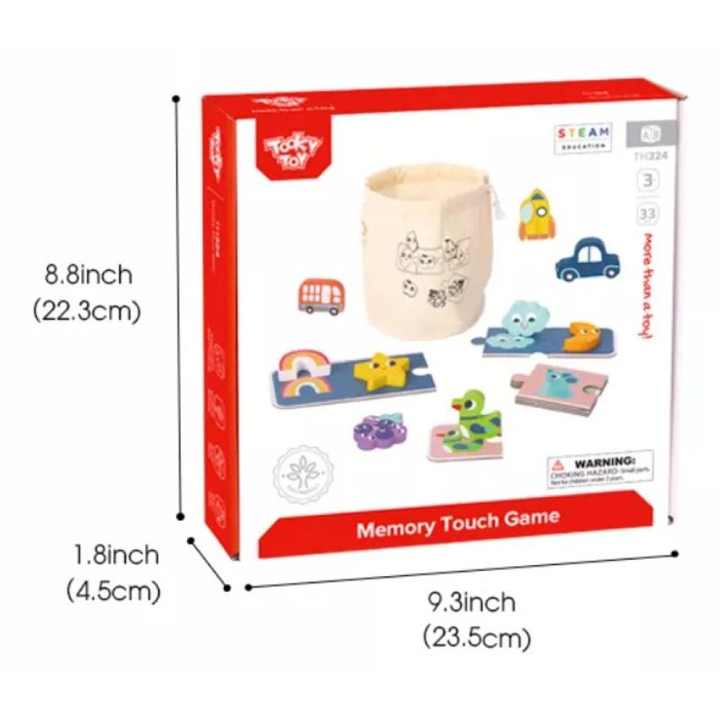 É um jogo educativo de memória e tato que estimula as habilidades de memória, atenção e tato.