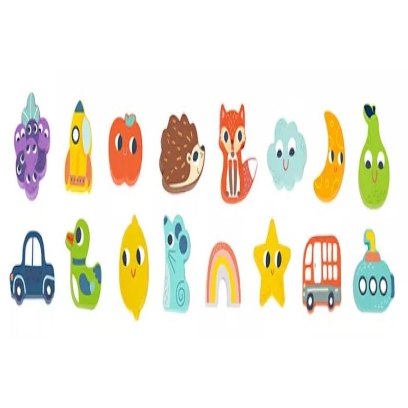 A criança deve combinar os quebra-cabeças de cada categoria entre si e depois colocar a figura de madeira correspondente em cada ilustração.