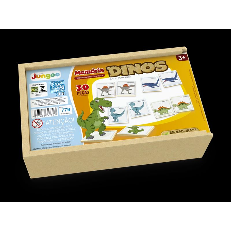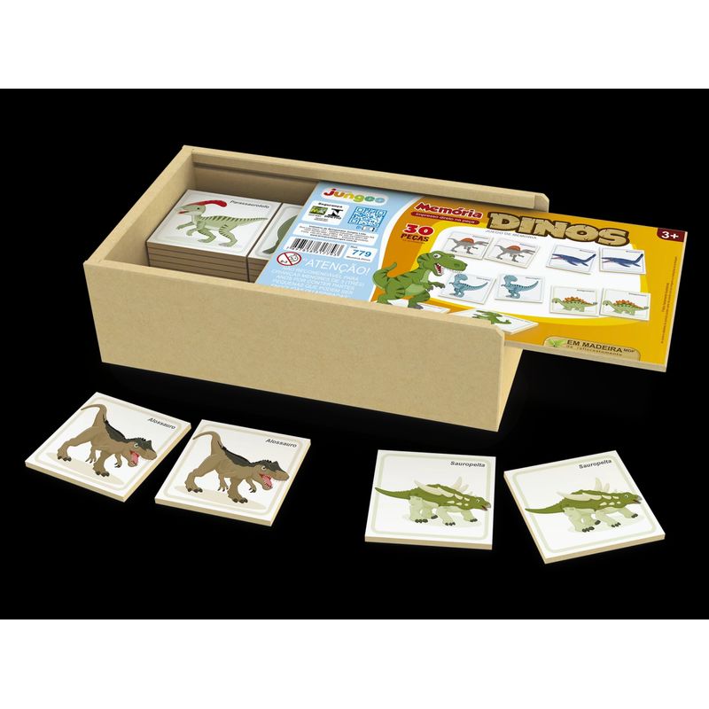 JOGO DA MEMÓRIA DOS DINOSSAUROS CAIXA MADEIRA C TAMPA 30 PÇS
