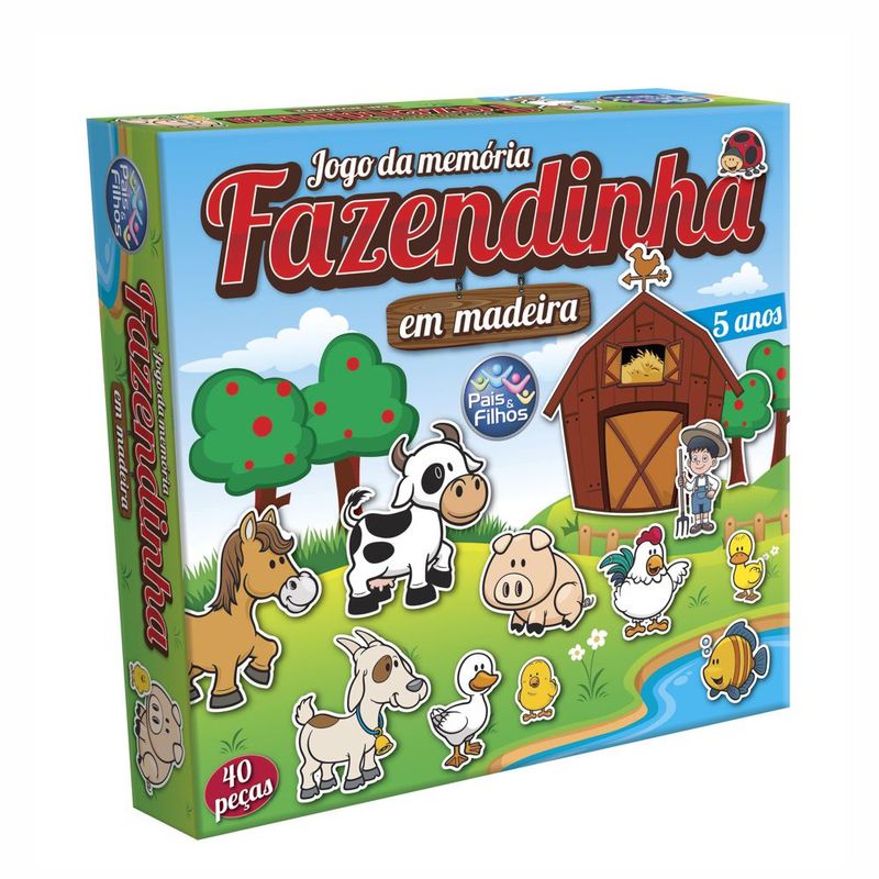 JOGOSJOGOS EDUCATIVOSJOGOS DE MEMÓRIAJogo da Memória em Madeira - Fazendinha - 40 peças - Pais e Filhos