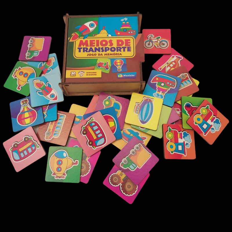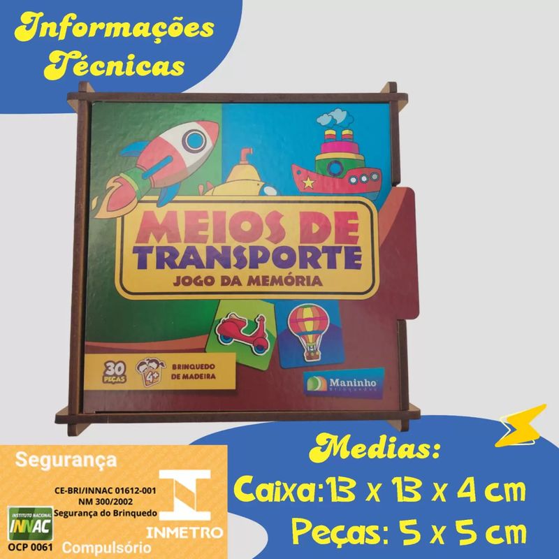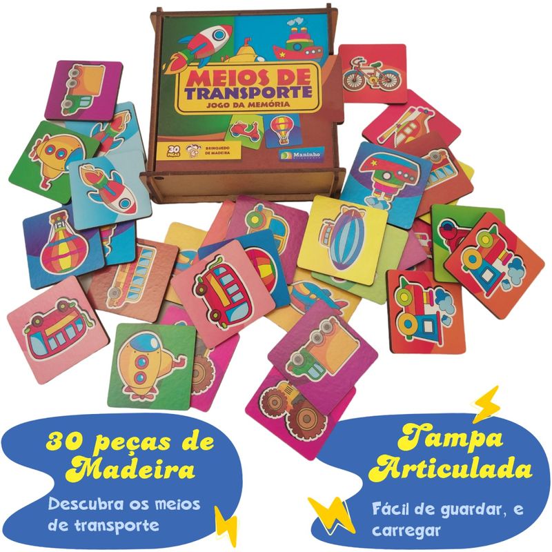 JOGO DA MEMÓRIA MEIOS DE TRANSPORTE 30 PÇ MADEIRA CX C TAMPA