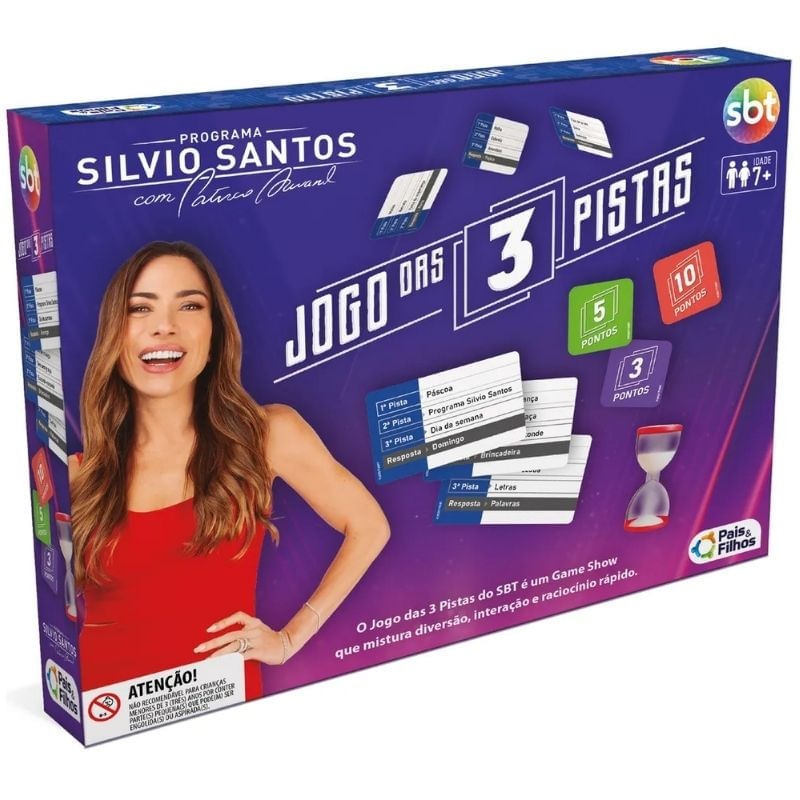 O “Jogo das 3 Pistas” é um produto licenciado do SBT que reproduz o game show de maior audiência do programa “Silvio Santos” com Patrícia Abravanel nas noites de domingo. Um desafio a partir de 3 pessoas, sendo 2 competidores e 1 mediador. A cada rodada, um jogador assume o papel de mediador, que vai ler até 3 pistas de uma carta, enquanto os outros participantes tentam adivinhar o nome ou a palavra secreta o mais rápido possível.
