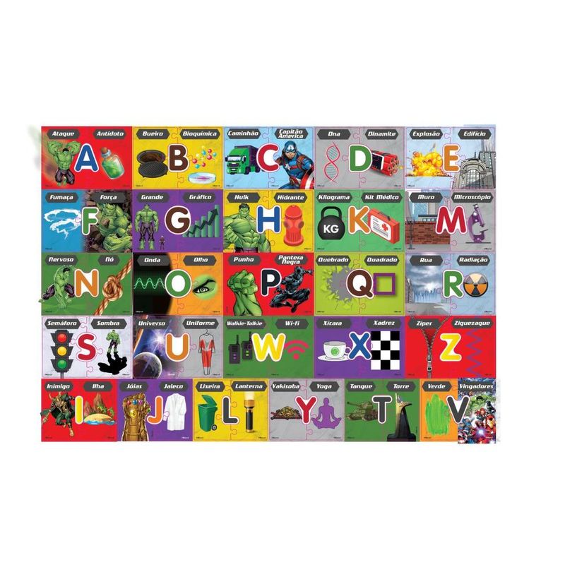 Nome do produto: Jogo das Letras Hulk;Idade recomendada: A partir de 4 anos;Selo Inmetro: 008653/2022;Contém: 78 peças.