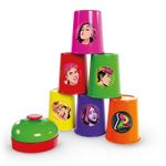 Jogo de agilidade, onde o jogador mais rápido vai organizar seus copos na mesma sequência de cores e cartas. Quem montar primeiro, toca a campainha e é o vencedor. Trabalha o raciocínio, a coordenação motora e o reconhecimento das cores. São 12 copos coloridos de plástico, 01 campainha e 50 cartas com diferentes montagens. Se divirta com DOS ROSA.