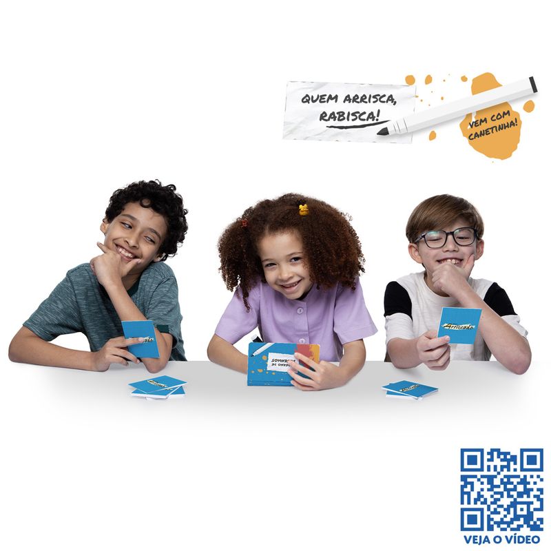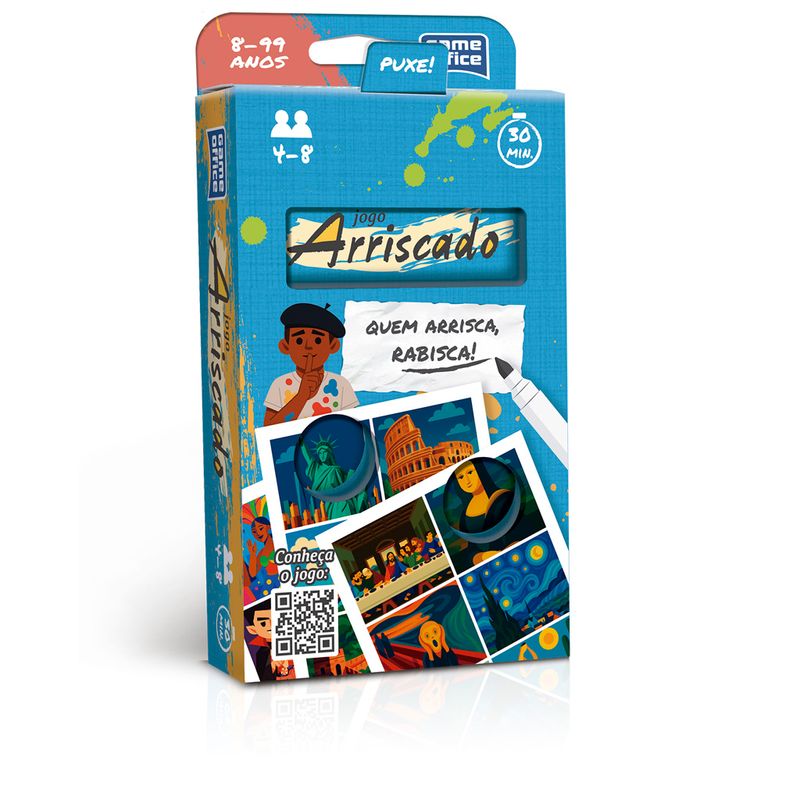 Em Arriscado, todos recebem um tema secreto — exceto os sabotadores. Um número sorteado define qual ilustração será desenhada. Jogadores se revezam no desenho coletivo: artistas tentam representar o tema, sabotadores confundem sem se revelar. No fim da rodada, todos veem o desenho, discutem e votam em quem acham que sabotou. Acertou? Ponto para os artistas. Errou? Ponto para os sabotadores. Vence quem acumular mais pontos após 3 rodadas!