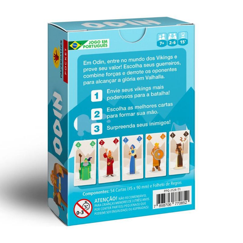 Com rodadas rápidas e momentos de tensão a cada turno, Odin é um jogo dinâmico e acessível, perfeito para desafiar amigos e família. Sua mecânica envolvente mantém cada partida única, garantindo diversão tanto para novos jogadores quanto para veteranos. Prepare-se para estratégias afiadas, surpresas inesperadas e a emoção de lutar pelo título de Rei ou Rainha dos Vikings!