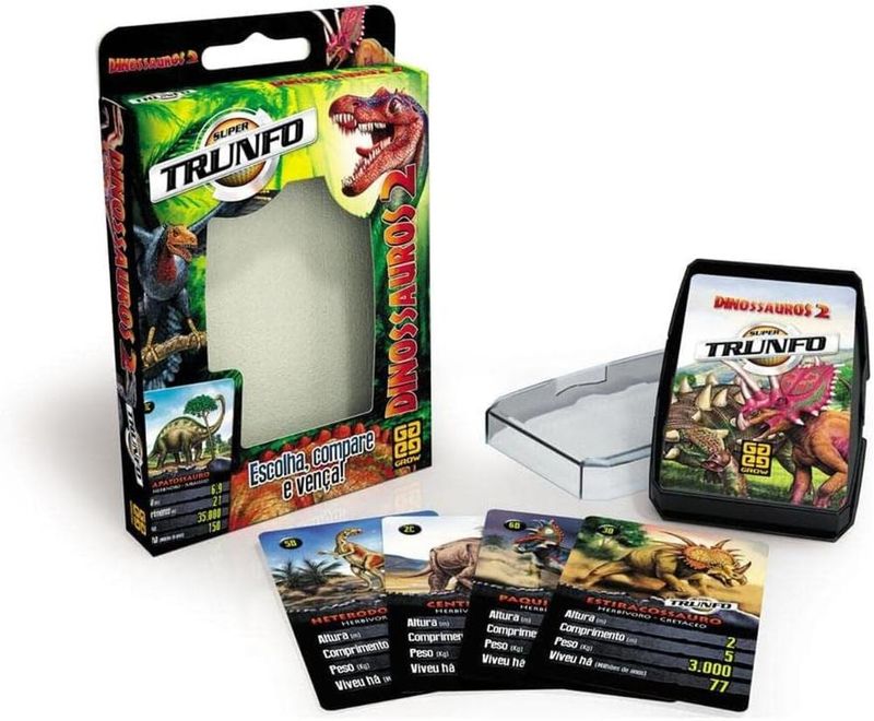 -Super Trunfo traz 32 cartas com imagens e informações para uma disputa superdivertida -Você compara sua carta com a do outro jogador. -Mas escolha bem a característica que vai utilizar a cada rodada, pois, se sua carta ganhar, você fica com a carta do outro jogador; se perder, ele fica com a sua! -Escolha, compare e vença esta e emocionante disputa! Características: Marca - Grow Cód. 3113 Recomendado A partir de 7 anos De 2 a 8 participantes