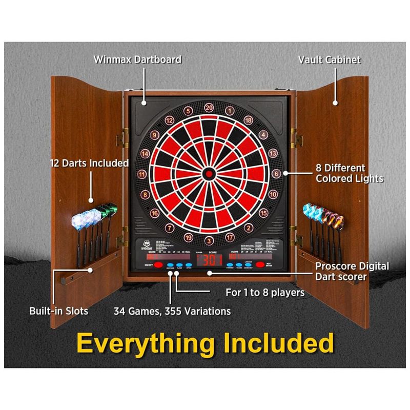 Com uma impressionante variedade de 34 jogos e 355 variações, até 8 jogadores podem participar simultaneamente. Além disso, há a opção de competir contra oponentes controlados pelo computador, oferecendo 5 níveis de dificuldade diferentes para desafiar suas habilidades. O dardo eletrônico pode ser alimentado pelo adaptador de energia incluído, permitindo que você o utilize em qualquer espaço sem ocupar mais espaço do que o necessário.