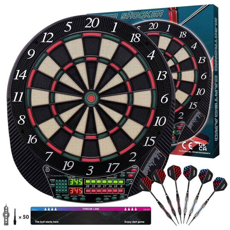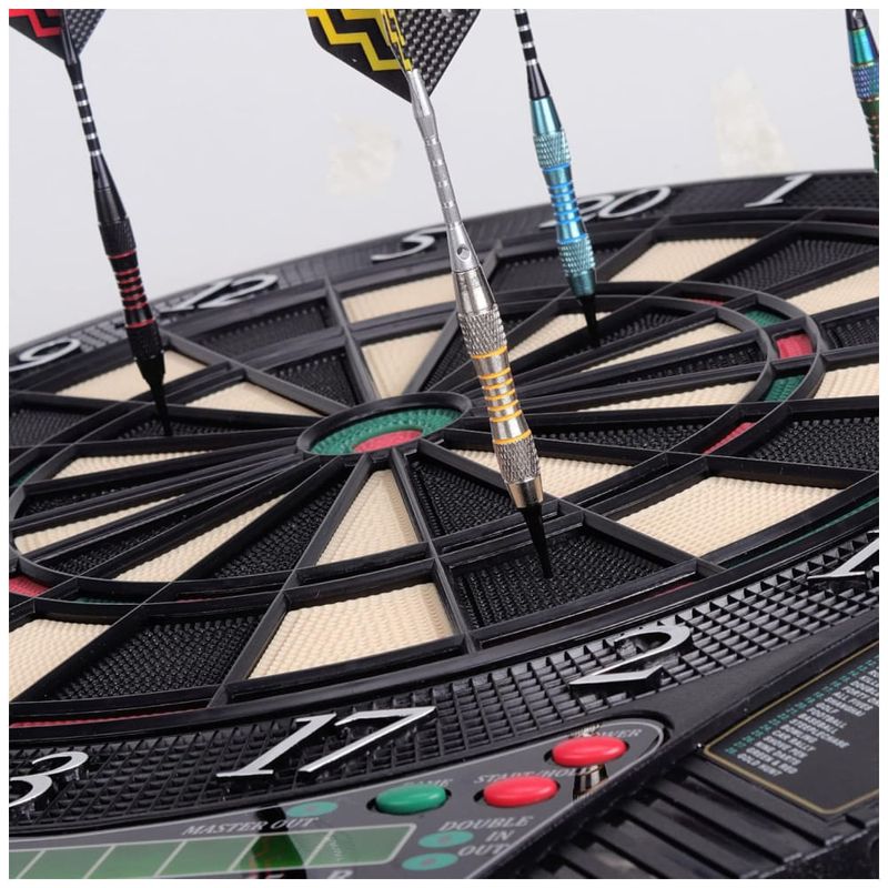 O pacote inclui 6 dardos com pontas de plástico, 1 linha de lançamento de dardo e 50 pontas macias, garantindo que você tenha tudo necessário para começar a jogar imediatamente. Este elegante alvo de dardos eletrônico é o presente perfeito para amigos, familiares e entusiastas do esporte, combinando funcionalidade avançada com um design atraente.