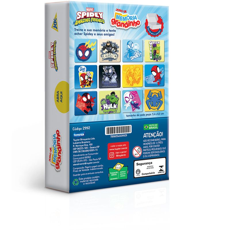 A linha JAK da empresa Toyster é composta por jogos de diversão para toda família e quebra-cabeças com os personagens mais queridos pela criançada. Nossos produtos ajudam no desenvolvimento e concentração e percepção visual. As crianças vão se divertir descobrindo Spidey e seus amigos neste jogo de memória com peças grandes!