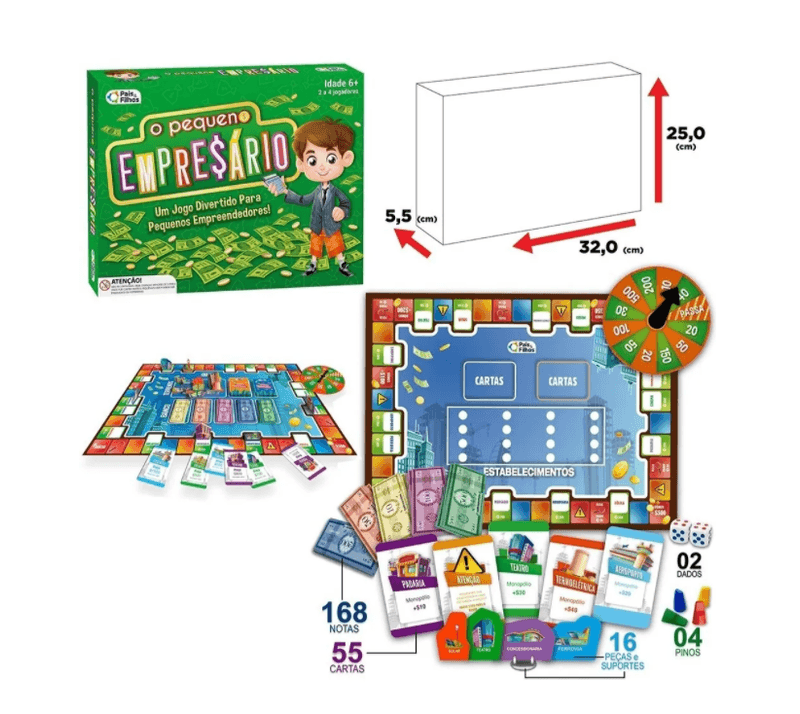 Material de fabricação papel cartão Garantia contra defeitos de fabricação 3 meses Produto indicado para crianças acima 6 anos, aprovado pelo Inmetro. Dimensões aproximadas da caixa em cm: 37 de comprimento x 23 de largura x 5 de altura