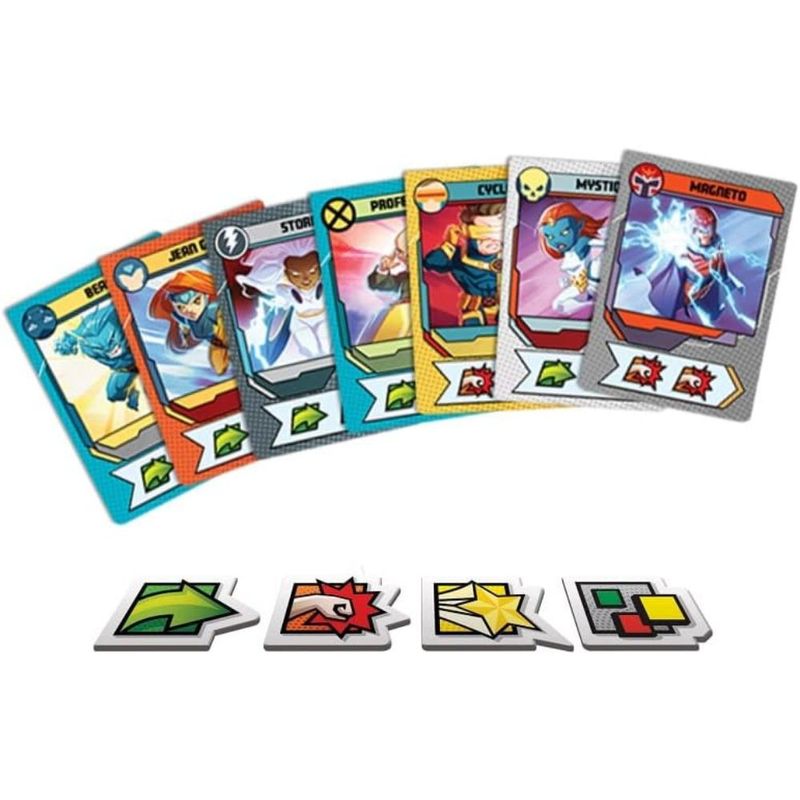 São 6 diferentes Heróis (Professor X, Cyclops, Jean Grey, Beast, Wolverine e Storm), 2 Anti-Heróis (Mystique e Magneto) e 2 Vilões (Juggernaut e Sabretooth), cada um com sua miniatura e baralho exclusivo! Os Anti-Heróis podem ser usados tanto como vilões quanto heróis.