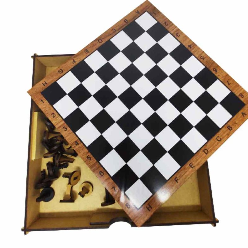 Tabuleiro em madeira Mdf tipo caixa e peças em mdf.