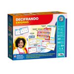 Ficha técnica:Marca: Pais e Filhos;Nome do produto: Jogo Decifrando Enigmas;Idade recomendada: A partir de 6 anos;Selo Inmetro: CE-BRI/ICEPEX-N 01264-25;Contém: 40 cartelas de desafios, 40 cartas de respostas, 1 tabuleiro de referência (alfabeto), 1 tabuleiro de pontos, 1 ampulheta, 4 canetinhas dry eraser, 1 apagador (felty) e 1 regra.