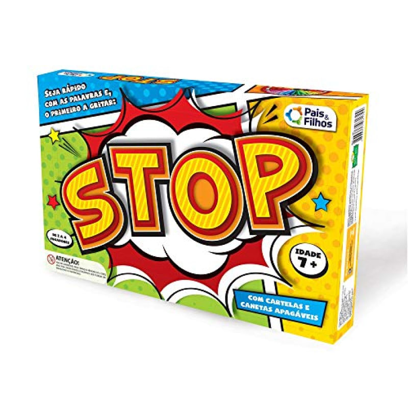 Seja rápido com as palavras e, o primeiro a gritar: STOP. Cada jogador pega uma cartela e preenche o seu nome. Primeiro, deve-se girar a roleta e definir os 5 temas da partida, escrevendo na ordem sorteada em todas as cartelas em jogo. Define-se na sorte quem é o primeiro participante a girar a roleta e assim o faz. Girada a roleta e definida a letra, cada jogador deve colocar a letra no campo correspondente na sua cartela e imediatamente escrever as palavras com a letra anotada nas colunas com os temas pré-definidos no início.
