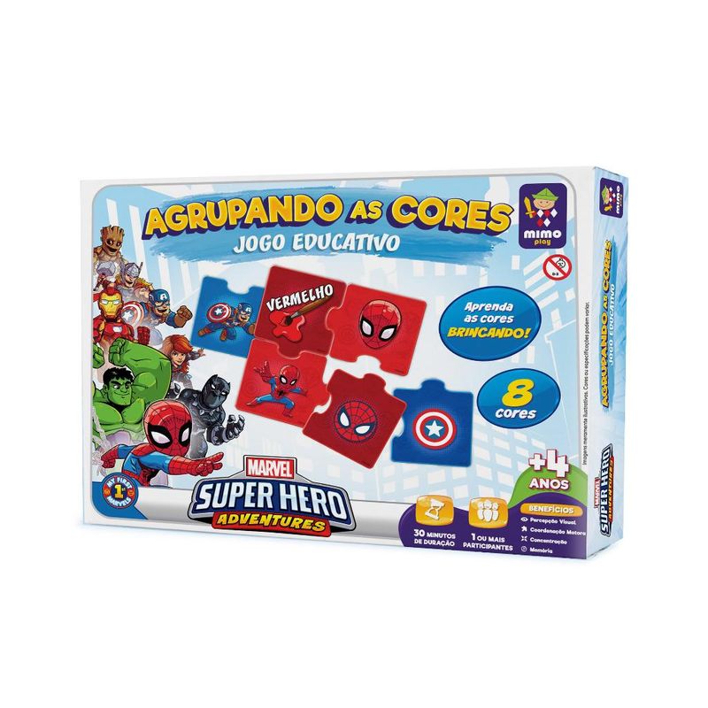 Aprenda as cores brincando com os heróis da Marvel com o Jogo Educativo - Agrupando as Cores - Marvel. O Jogo Agrupando as Cores da Marvel possui 32 peças, podendo ter de 1 ou mais participantes na brincadeira, são 30 minutos de muita diversão e 8 cores diferentes dos seus heróis favoritos para aprender brincando a agrupar as cores.