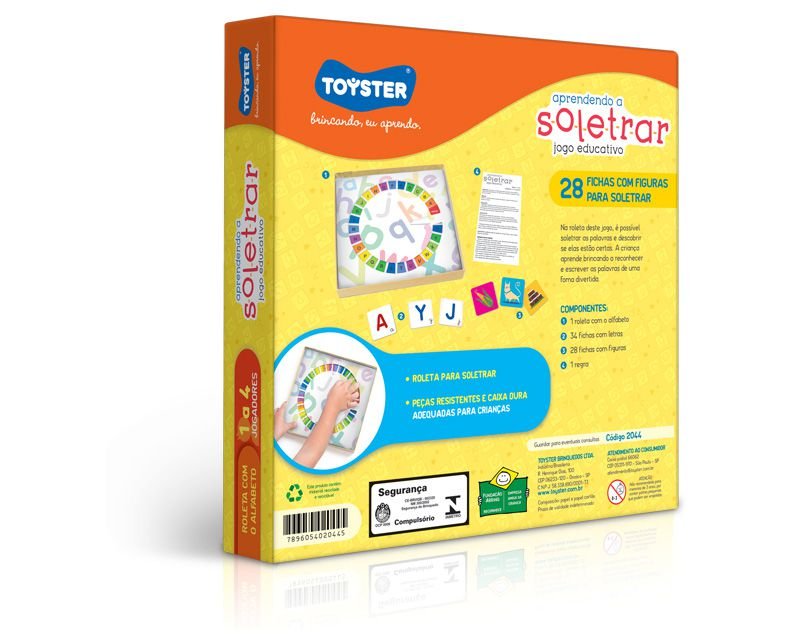 Contém: 1 roleta com alfabeto, 34 fichas com letras e 28 fichas com fuguras