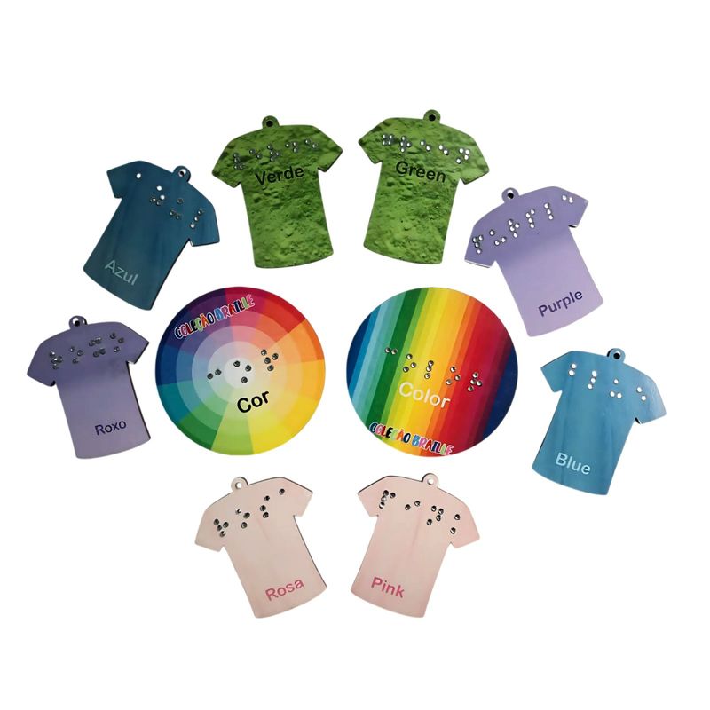 Descubra o Jogo Educativo Infantil Cores em Braille Ingles Exclusivo, uma ferramenta educativa única que combina inclusão e aprendizado de idiomas. Ideal para crianças e pessoas com deficiência visual, este jogo inovador utiliza peças em formato de camisas coloridas, com nomes das cores em português e inglês, acompanhadas da escrita em Braille, proporcionando uma experiência sensorial completa.