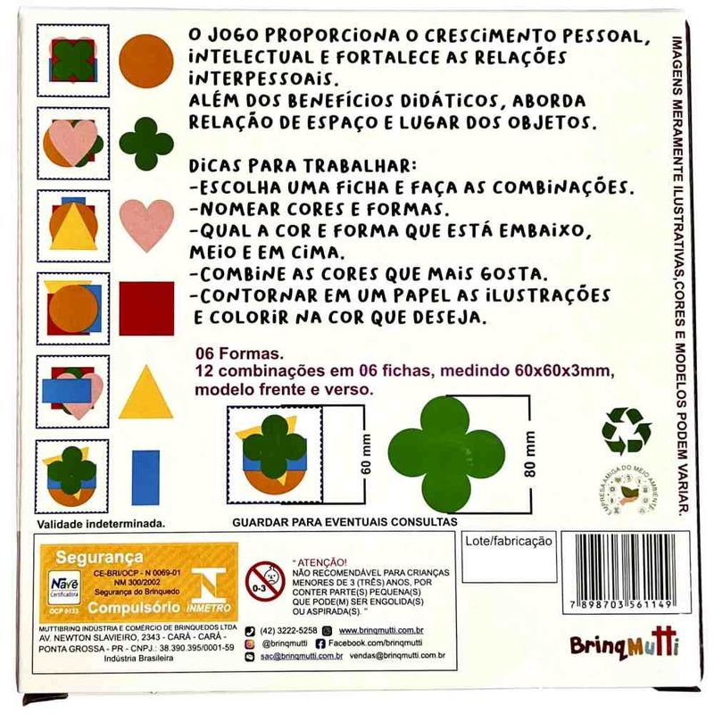 Contém: 06 Formas Geométricas e 12 combinações em 6 fichas.