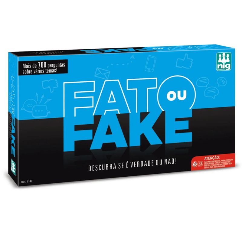 No Jogo Fato ou Fake da NIG Brinquedos, a diversão está garantida enquanto você coloca à prova seus conhecimentos! Com 700 perguntas intrigantes sobre temas variados como História, Esportes, Tecnologia, Geografia, Robótica, Redes Sociais e muito mais, os jogadores terão que decidir se as afirmações são verdadeiras (Fato) ou falsas (Fake). A cada acerto, o jogador avança pelo tabuleiro em uma emocionante corrida até o final. Além de aprender curiosidades incríveis, o jogo promete momentos de interação e risadas ao discutir temas do dia a dia, até mesmo sobre seus amigos!