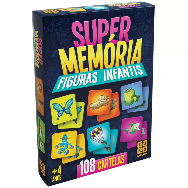 Jogo Super Memória - Figuras Infantis da Grow O Super Memória Figuras Infantis traz 54 cartelas com figuras para você desafiar a sua memória com seus amigos.