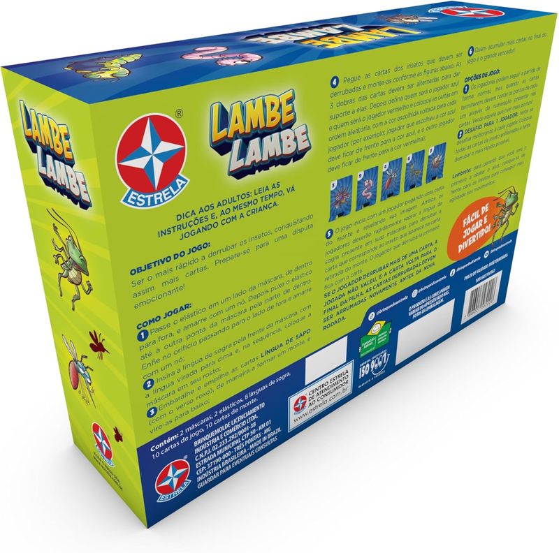 Um jogo de ação em que você ganha com muita agilidade. Enfilere as cartas com os insetos, e se posicione à frente delas. Embaralhe as cartas do monte, e revele a carta do topo e, com a lingua de sogra, tente derrubar a carta correspondente antes de seu oponente. Seja o mais rápido a derrubar os insetos com a lingua do sapo, acumule mais insetos e ganhe o jogo!