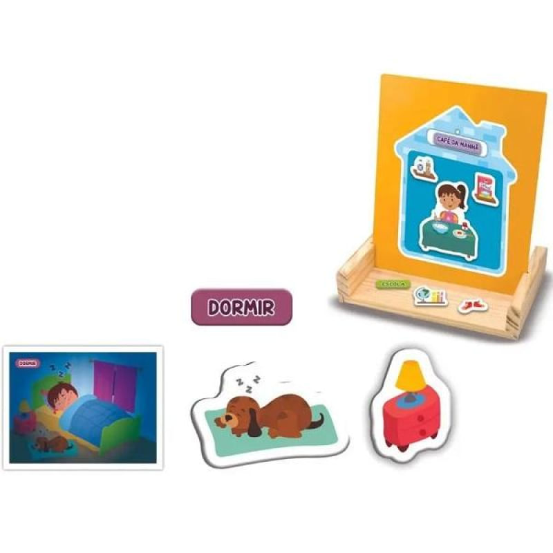 Com o quadro Minha Rotina, a criança vai fazer uma linha do tempo com as cartinhas de atividades (acordar, escovar os dentes, tomar café e muito mais).