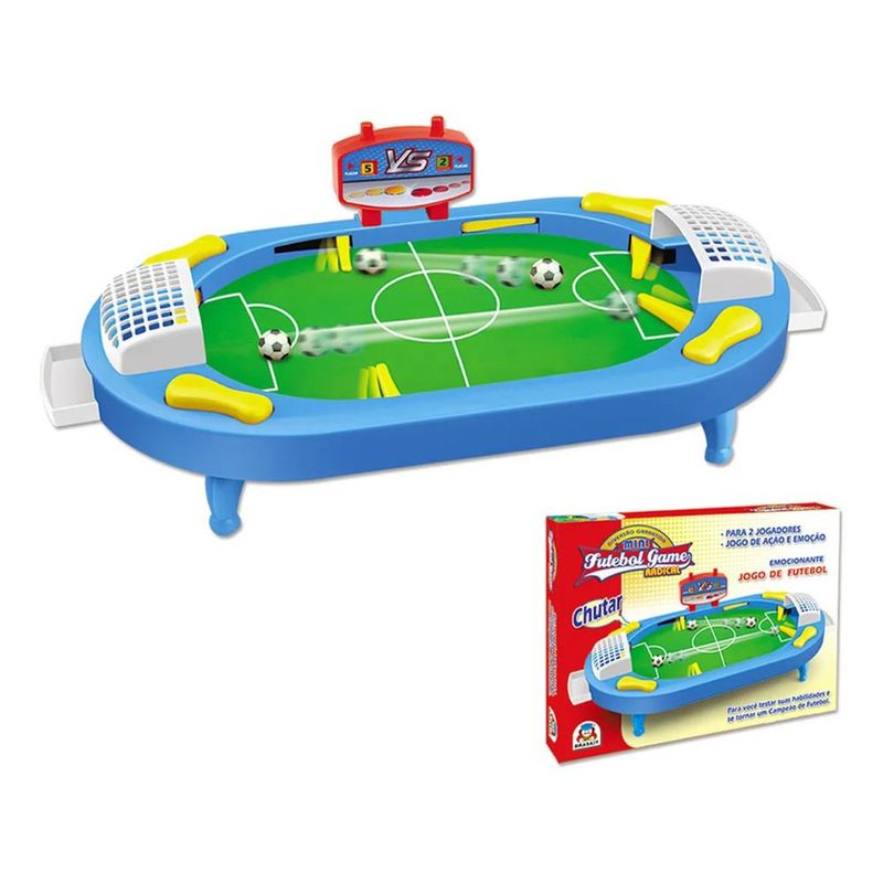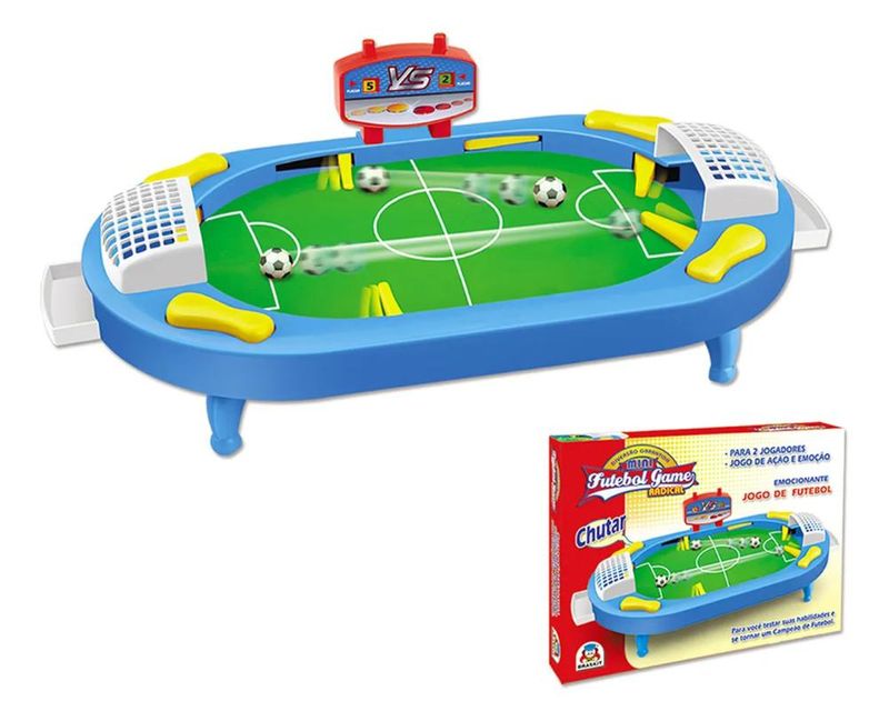-Apita o árbitro e começa o jogo! -Agora é sua chance de marcar muitos gols! -Fácil de carregar, possui placar de numeração de gols e botões ataque/defesa. -Teste sua habilidade e criatividade, desafie seus amigos e prove que você é o melhor! Características: Marca - Braskit Cód. 2106 Recomendado A partir de 4 anos 2 Jogadores CONTÉM: 1 MESA 1 PLACAR 2 REDES 2 PORTA-BOLAS 2 BOLINHAS 4 PÉS