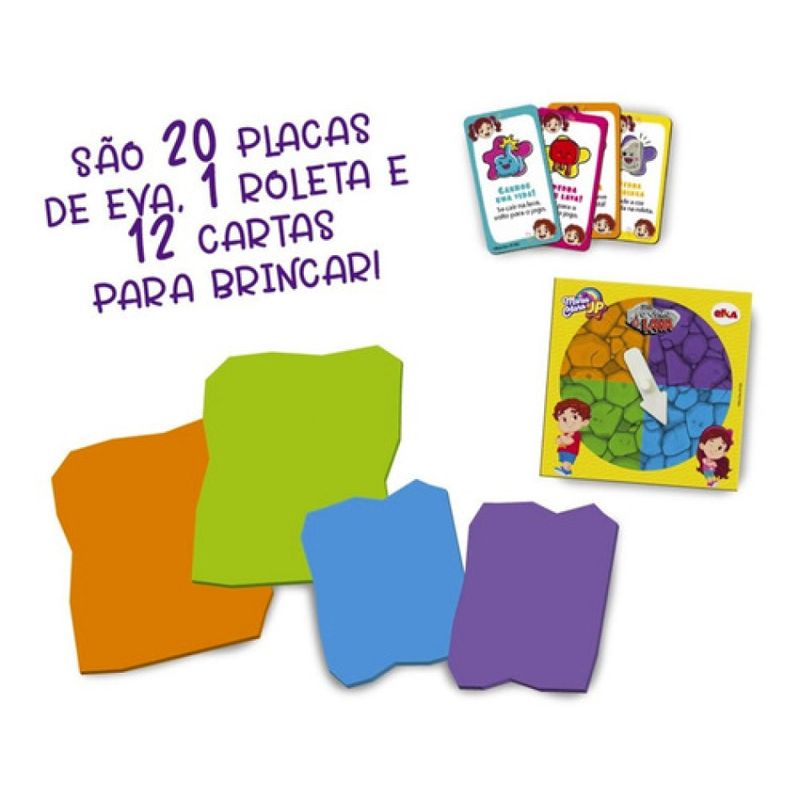 Jogue o Chão é Lava da forma que sua imaginação quiser, a regra é sempre fazer de conta que o Chão é Lava e as pedras são o único lugar que vc pode pisar! Se equilibre nas pedras para não se queimar! São 20 placas de EVA, 1 roleta e 12 cartas para brincar.