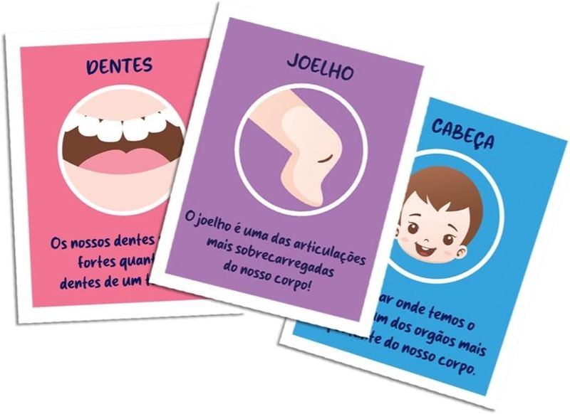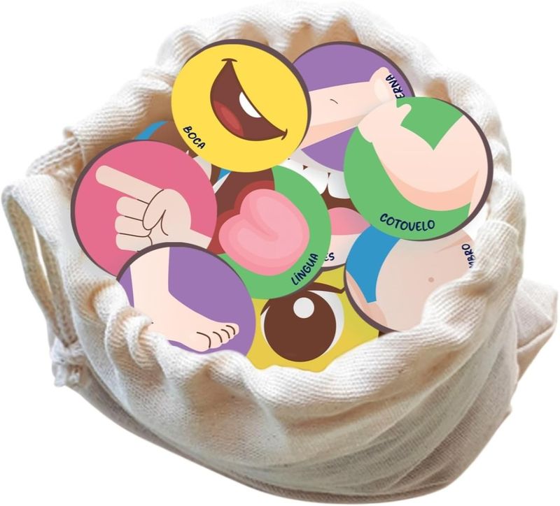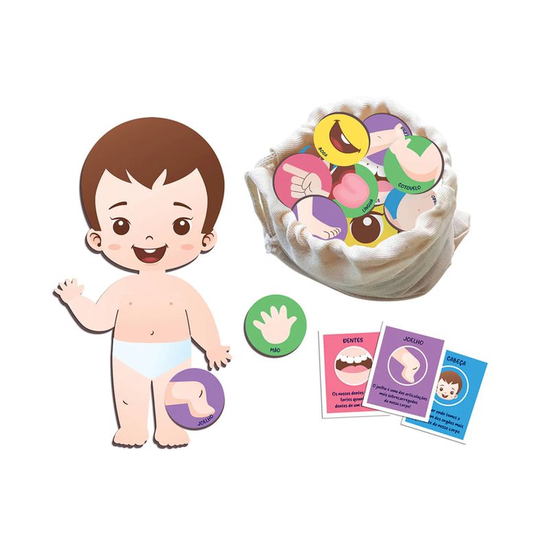 Jogo pedagógico para ensinar a criança a reconhecer as principais partes do corpo e nomeá-las.