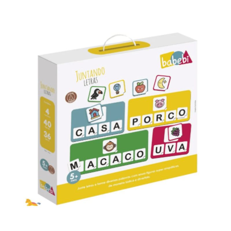 Mergulhe no mundo mágico das palavras com o Jogo Pedagógico Juntando Letras da Babebi, uma aventura divertida e educativa que transforma a alfabetização em uma brincadeira emocionante! Este jogo encantador, com suas peças coloridas e ilustrações cativantes, convida os pequenos exploradores a desvendarem os segredos das letras e formarem palavras com alegria e criatividade. Ao encaixar cada peça, a criança desenvolve o raciocínio lógico, a coordenação motora e a consciência fonológica, enquanto se diverte com as imagens vibrantes e os desafios estimulantes. Feito com madeira reflorestada e materiais seguros, o Jogo Pedagógico Juntando Letras da Babebi é um presente que educa, diverte e inspira, preparando os pequenos para o mundo da leitura e da escrita com confiança e entusiasmo.