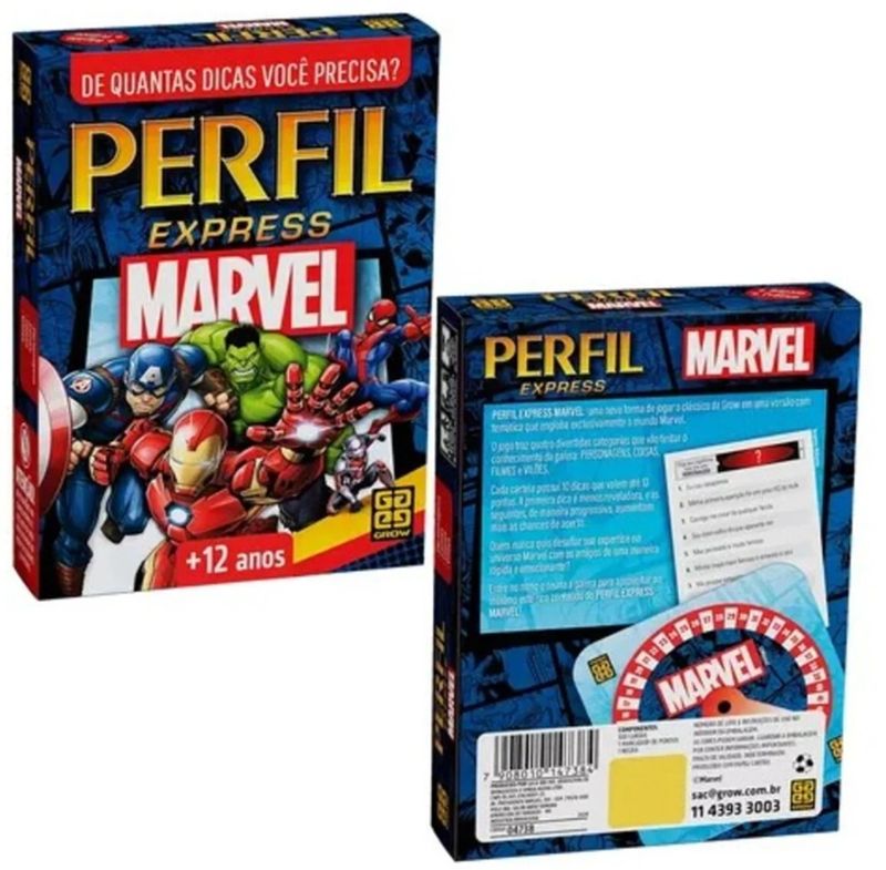 Com Perfil Express Marvel, os jogadores vão se divertir com categorias inspiradas no universo Marvel. Eles vão se encantar relembrando seus heróis e vilões favoritos enquanto tentam adivinhar a carta da vez. Esta versão possui um marcador exclusivo e foi desenvolvida para duas pessoas ou duas equipes jogarem. O grande vencedor será aquele que acumular mais pontos ao longo de cinco emocionantes rodadas.