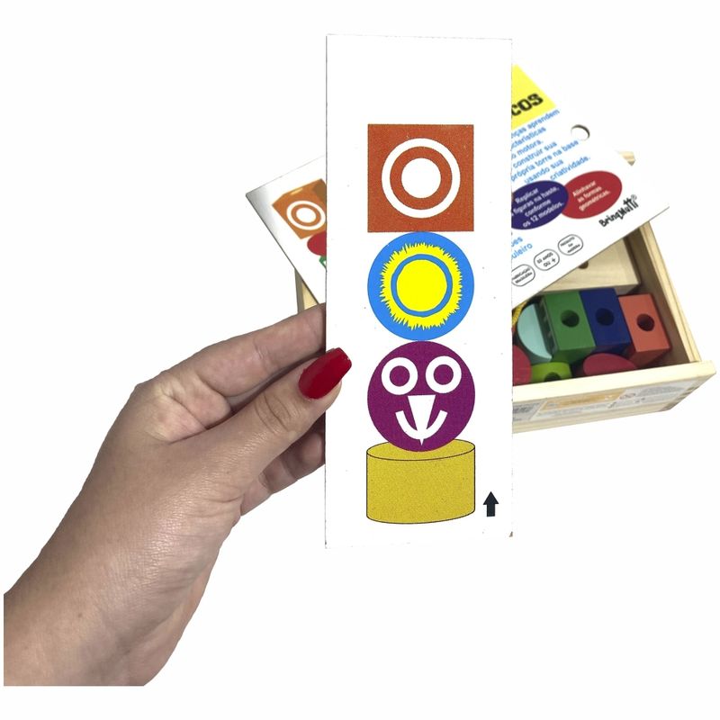Contém 6 fichas, 13 formas, 2 cordões e 1 tabuleiro