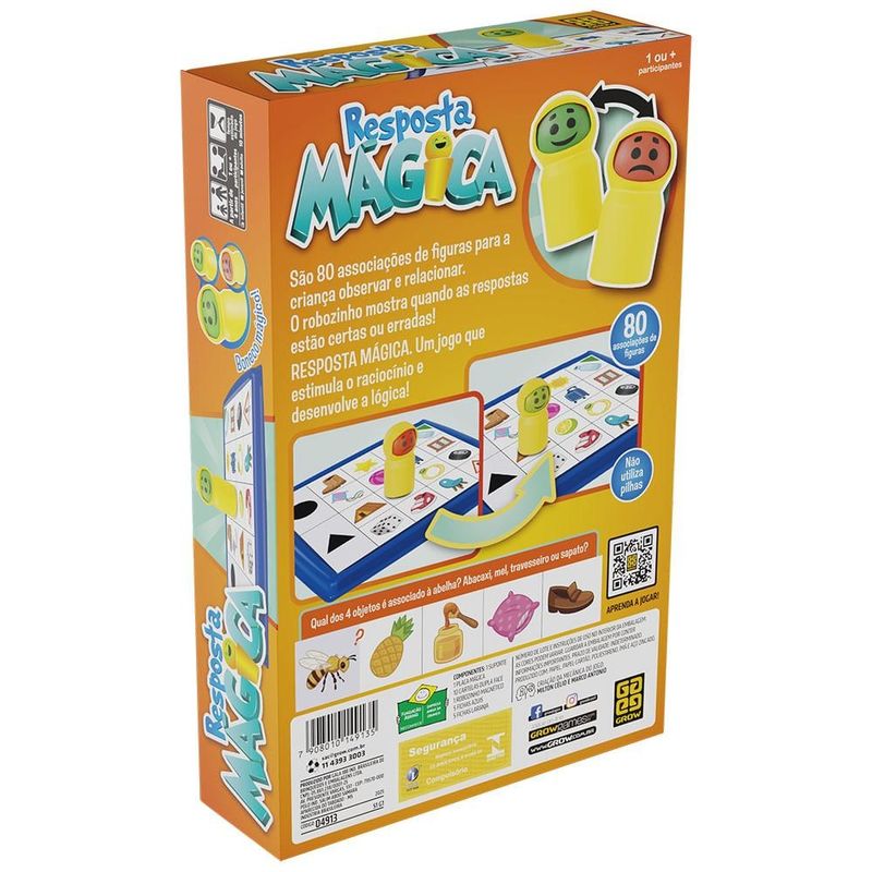 Descubra o poder da diversão inteligente com o Jogo Resposta Mágica Grow! São 80 associações de figuras para observar e relacionar de forma divertida e educativa. Escolha entre as cartelas com temas variados — cores, formas, animais, quantidades, figuras geométricas e muito mais!