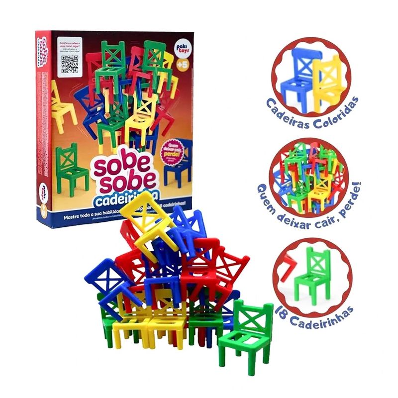 O Jogo Infantil Sobe Sobe Cadeirinhas Empilhar Equilibrar da marca Pakitoys é perfeito para crianças a partir de 5 anos de idade. Com cores vibrantes e um design colorido, este jogo é uma ótima opção para estimular a criatividade e o desenvolvimento motor dos pequenos. Com 18 peças, as crianças podem empilhar e equilibrar as cadeirinhas, criando diferentes estruturas e explorando sua imaginação. Feito de plástico resistente, este jogo é seguro e durável. Além disso, é um ótimo presente para o Dia das Crianças. Não perca a oportunidade de proporcionar diversão e aprendizado para os pequenos com o Jogo Infantil Sobe Sobe Cadeirinhas Empilhar Equilibrar.