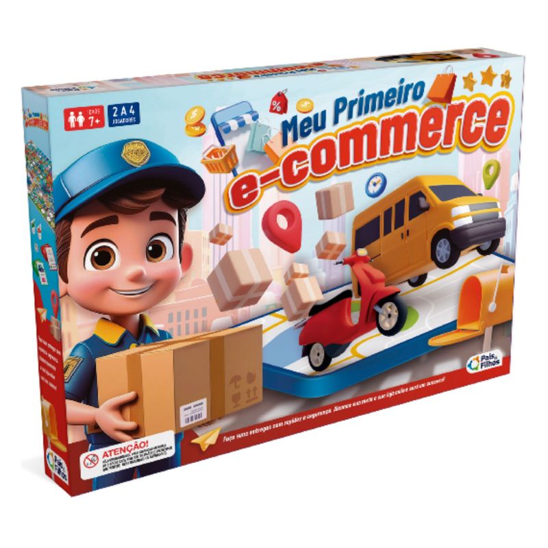 Descrição do Produto: O jogo de tabuleiro Meu Primeiro E-commerce, desenvolvido pela Pais e Filhos Brinquedos, é uma proposta educativa que alia diversão e aprendizado. Indicado para crianças a partir de 7 anos, o jogo apresenta de forma lúdica o funcionamento de uma loja virtual, incentivando o empreendedorismo desde cedo. Durante a partida, os jogadores aprendem sobre planejamento estratégico, gestão de vendas e logística de entregas, simulando os principais desafios de um negócio online. O objetivo é estruturar a melhor estratégia para administrar a loja virtual e conquistar a pontuação máxima. Conteúdo da embalagem: 1 tabuleiro 1 dado 4 pinos 4 veículos cartonados 4 bases plásticas 59 cartas de notificações 53 cartas da central de logística