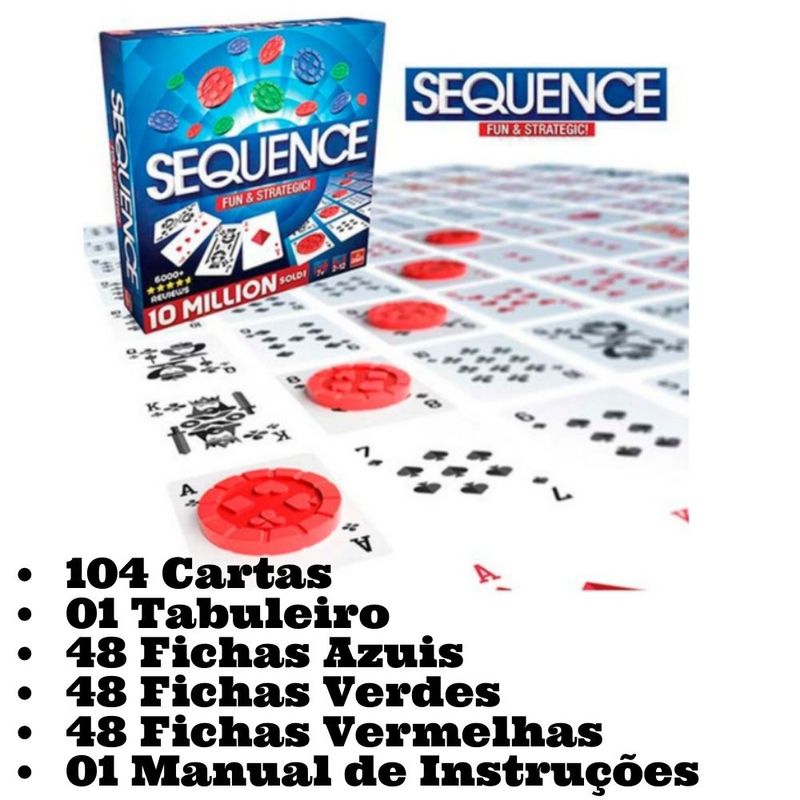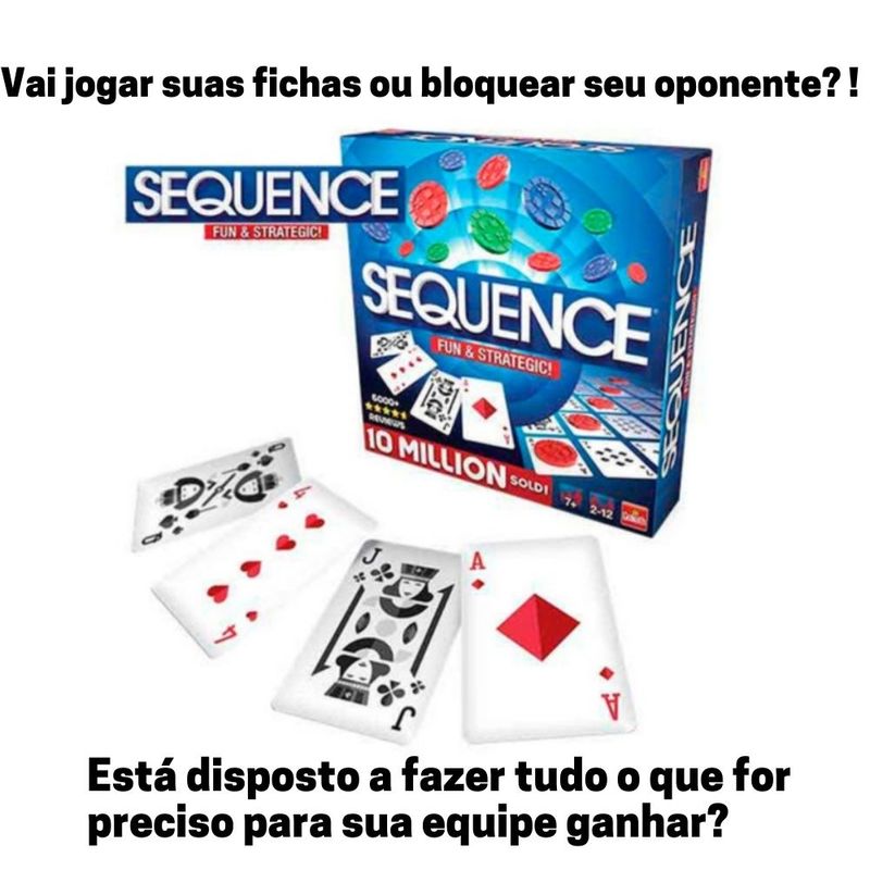 Vai jogar suas fichas ou bloquear seu oponente? Está disposto a fazer tudo o que for preciso para sua equipe ganhar? Sequence é um jogo emocionante, com milhões de unidades vendidas em todo o mundo. Agora só depende de você... as cartas estão em suas mãos!