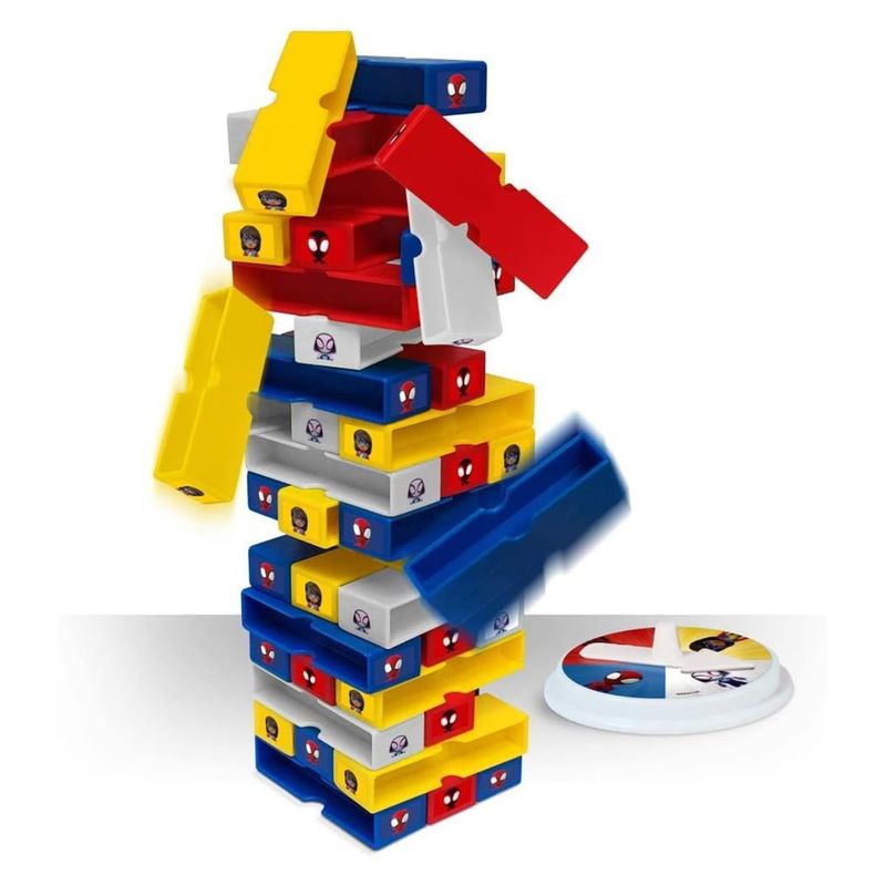 Terremoto é um jogo de equilíbrio que requer muita atenção e sangue frio! Brinque com os personagens Spidey construindo a torre, na roleta, sorteie a cor do bloco, tire com cuidado e coloque-o no topo da torre, mas tenha muito cuidado para não fazer um terremoto e perder o jogo.