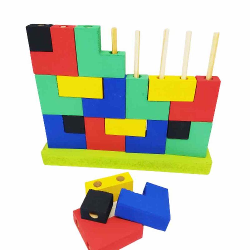Jogo Tetris Coluna - Blocos de Encaixe - Madeira - Marcio Artesanatos